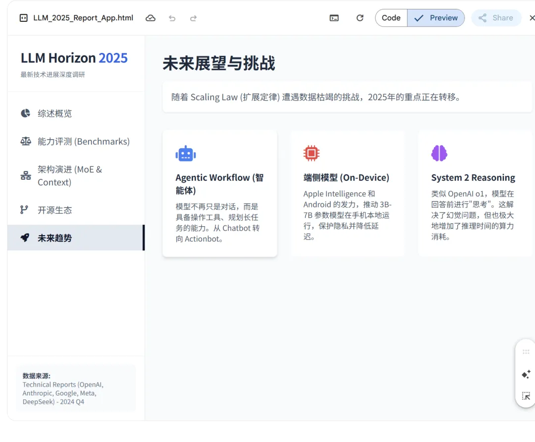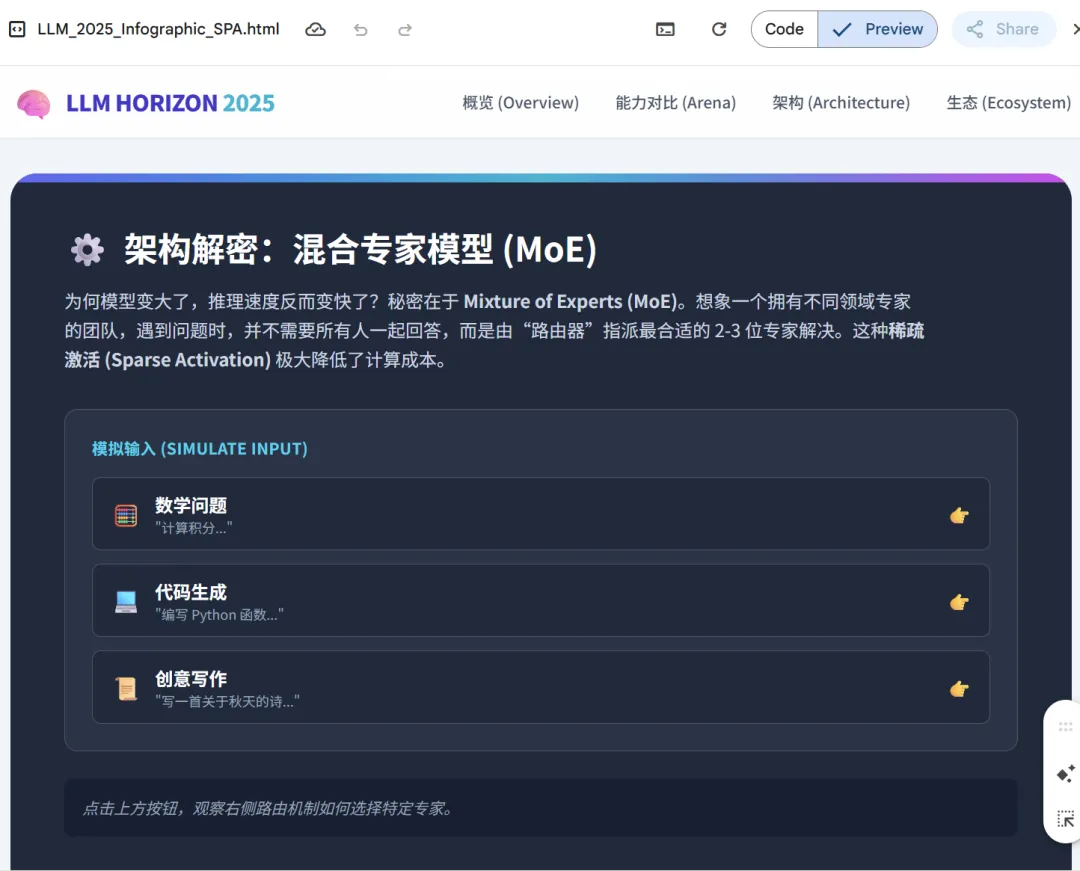 你以为这就完了吗?nonono,Gemini还能一键给报告生成可视化网页或信息图表,得益于Gemini强大的前端能力,生成的网页还是非常好看的。