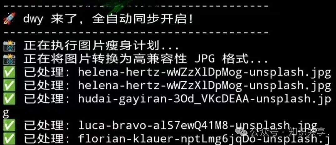 接下来,脚本会自动帮我完成所有苦力活:智能压缩图片、地毯式修正文档链接、清理冗余缓存、一键同步仓库。不到一分钟,新文章就会准时上线。
